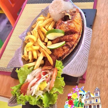 El restaurante está ubicado frente al parque principal, lo que le da un ambiente tranquilo y acogedor. Su interior está decorado con elementos que le dan un toque de encanto.