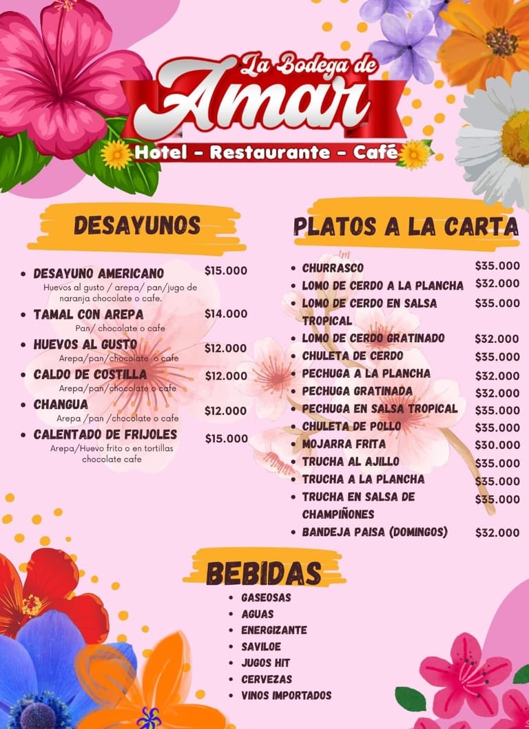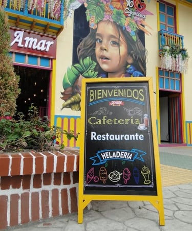 En la esquina más linda de Cajamarca, Tolima, se encuentra el restaurante de la bodega de Amar. Un lugar encantador que alegra el día a cualquiera que lo visite.