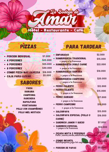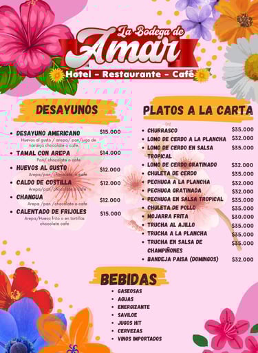 Ya sea para un desayuno, un almuerzo, una onces, una cena, disfrutar de un helado, una bebida o celebrar una fecha especial, la bodega de Amar es el lugar ideal.